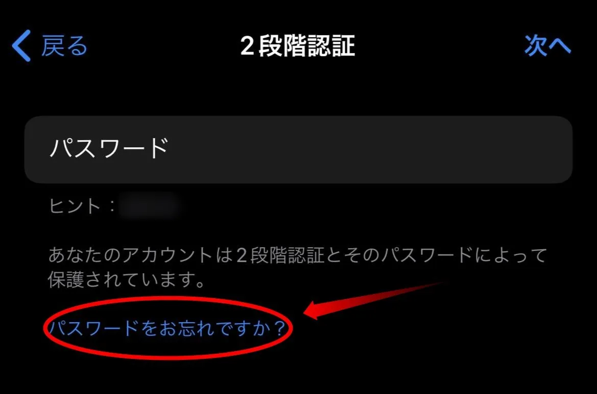 ここをタップすると回復用のリカバリーコードが登録したメールアドレス宛に送信されます。